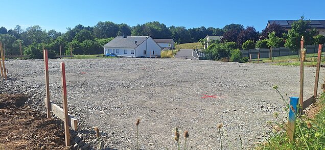 Die Schnurgerüstabsteckung sorgt dafür, dass Ihr neues Gebäude exakt an der richtigen Stelle auf dem Grundstück gebaut wird. Dabei überträgt der Vermessungsingenieur die geplanten Hausmaße und Achsen aus dem Lageplan präzise in die Örtlichkeit.